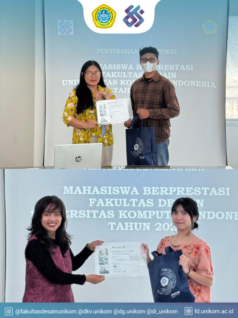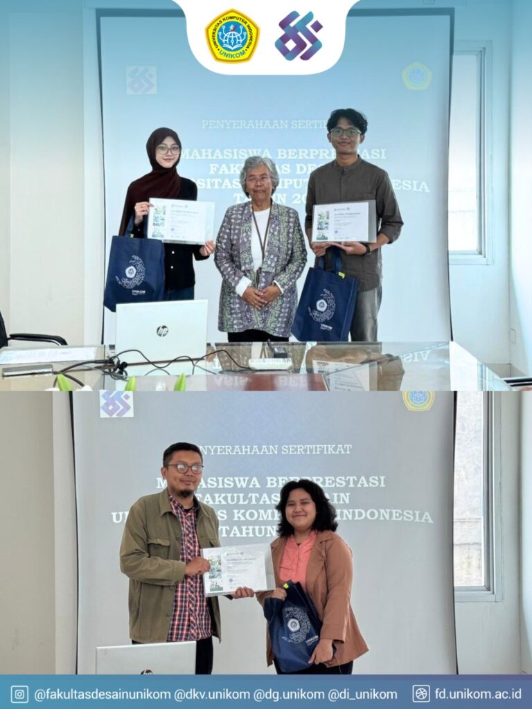 Bandung, Senin, 6 April 2026 telah dilaksanakan acara Penetapan Mahasiswa Berprestasi Tingkat Fakultas Desain UNIKOM Tahun 2026. Penyerahan piagam penghargaan diberikan langsung oleh Dekan Fakultas Desain, Prof. Dr. Ir. Lia Warlina, M.Si, didampingi oleh para Ketua Program Studi di lingkungan Fakultas Desain.