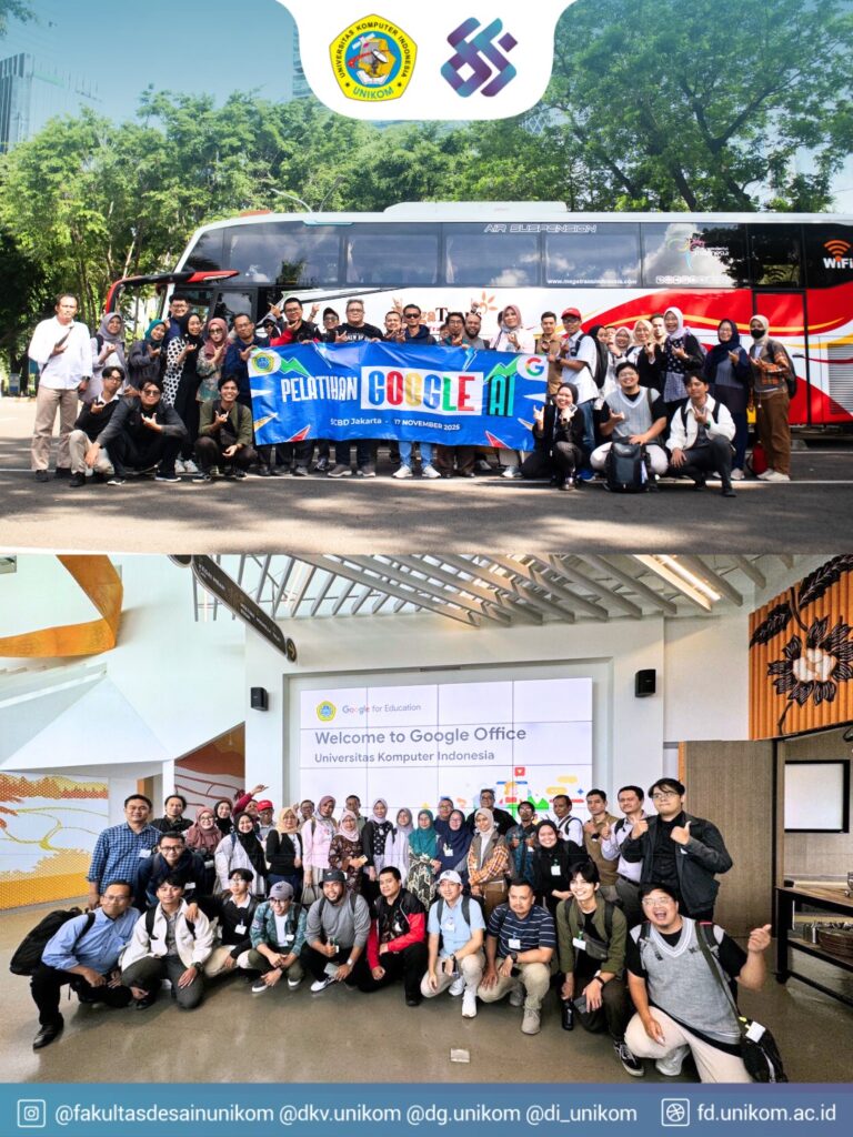 Jakarta, 17 November 2025 — Dalam upaya meningkatkan mutu pendidikan berbasis teknologi, delegasi dosen Fakultas Desain UNIKOM bersama Direktur, Ketua Program Studi (Kaprodi), dan jajaran dosen UNIKOM lainnya, melaksanakan kunjungan resmi dan pelatihan di kantor Google Indonesia.